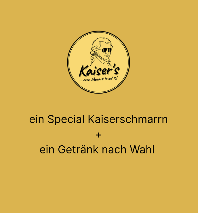 Mit diesem Gutschein erhältst du einen Special Kaiserschmarrn und ein Getränk nach Wahl.